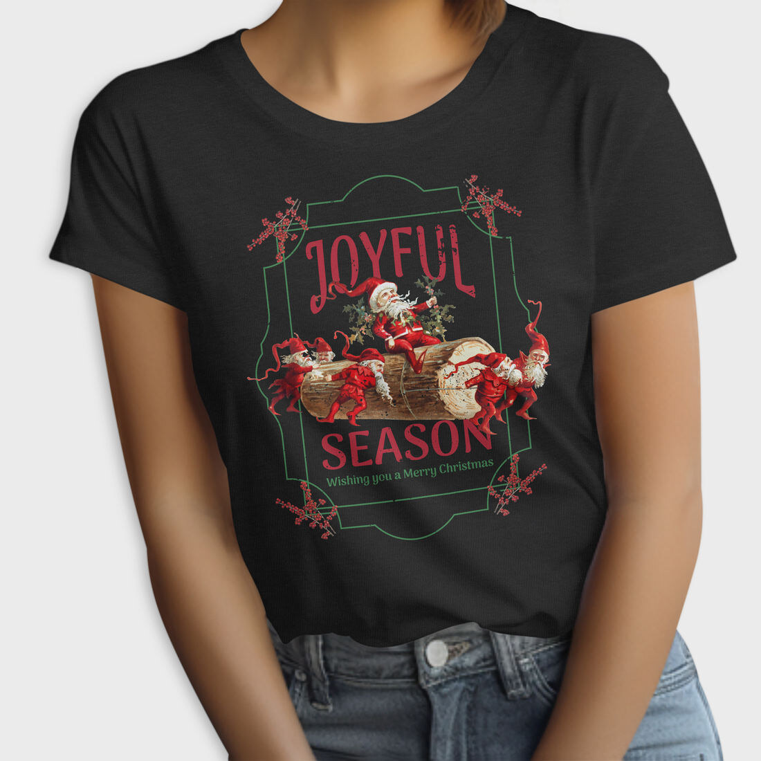 Christmas Season Santa And Elves Joyful, Tricou Femei