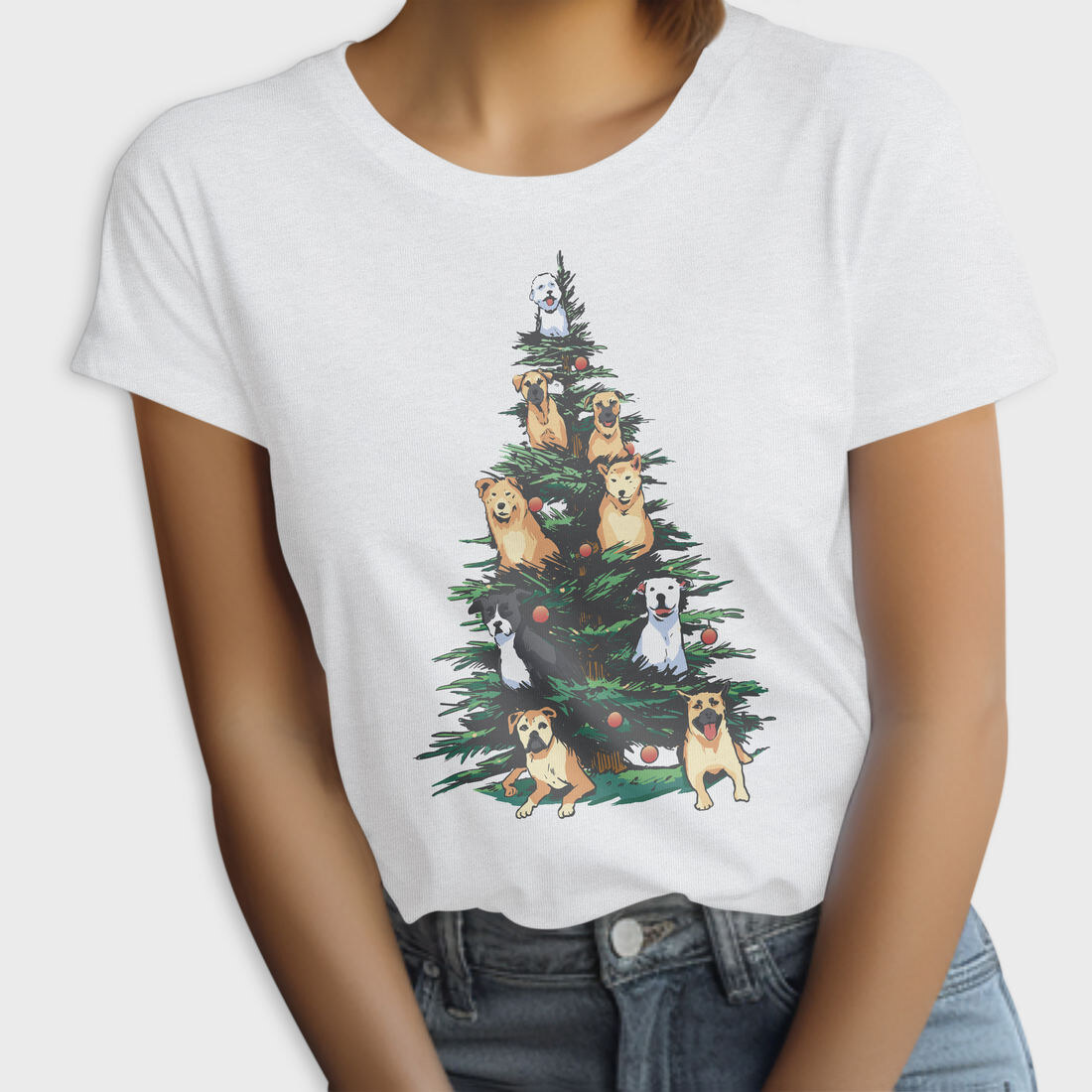 Christmas Tree With Dogs Realistic, Tricou Femei