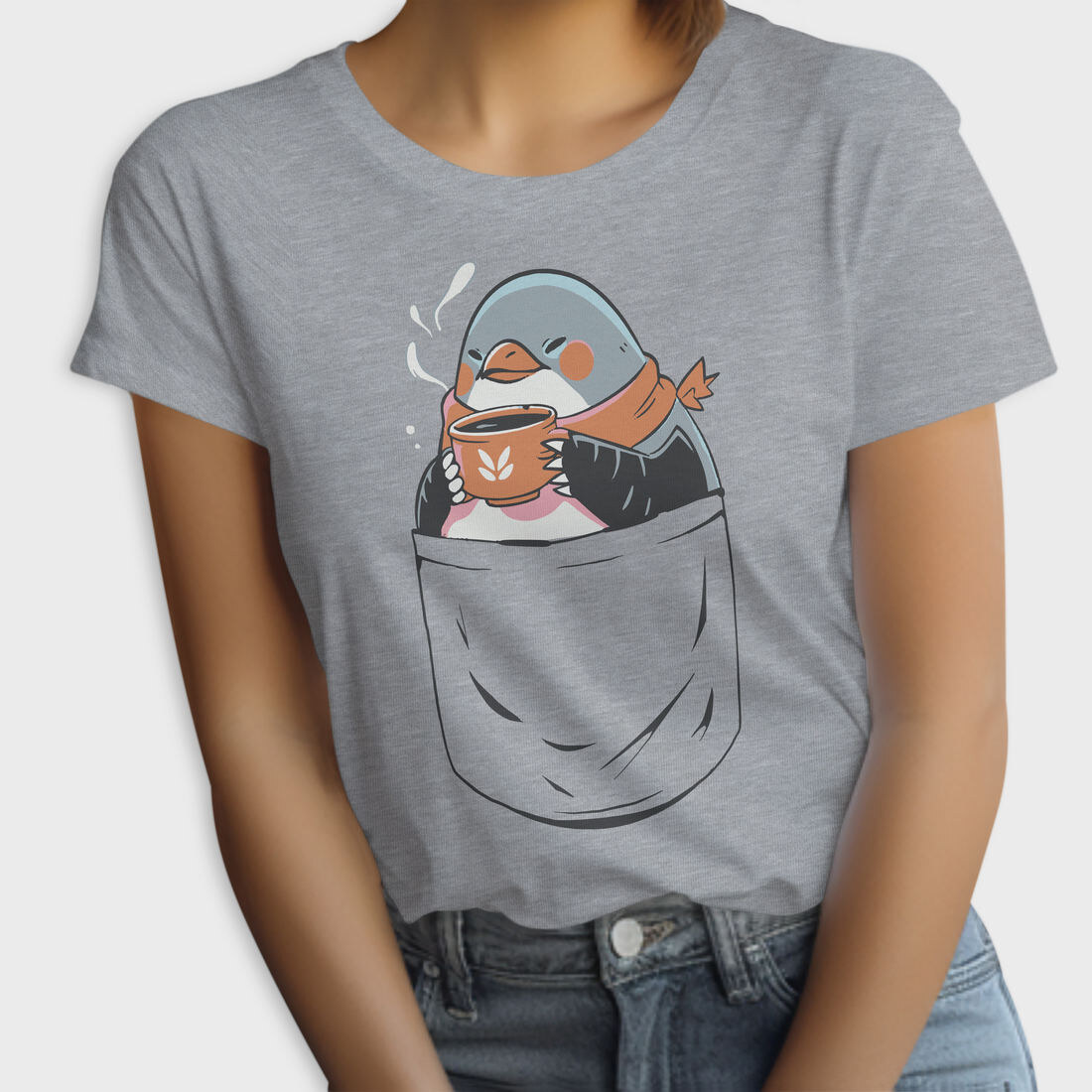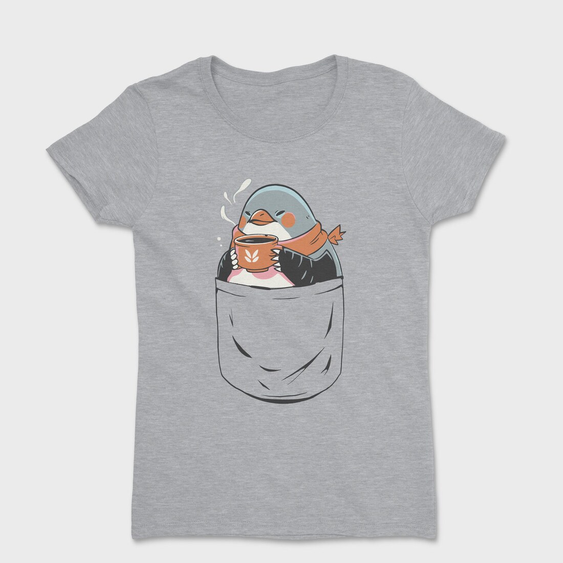 Cute Penguin In Pocket Coffee, Tricou Femei