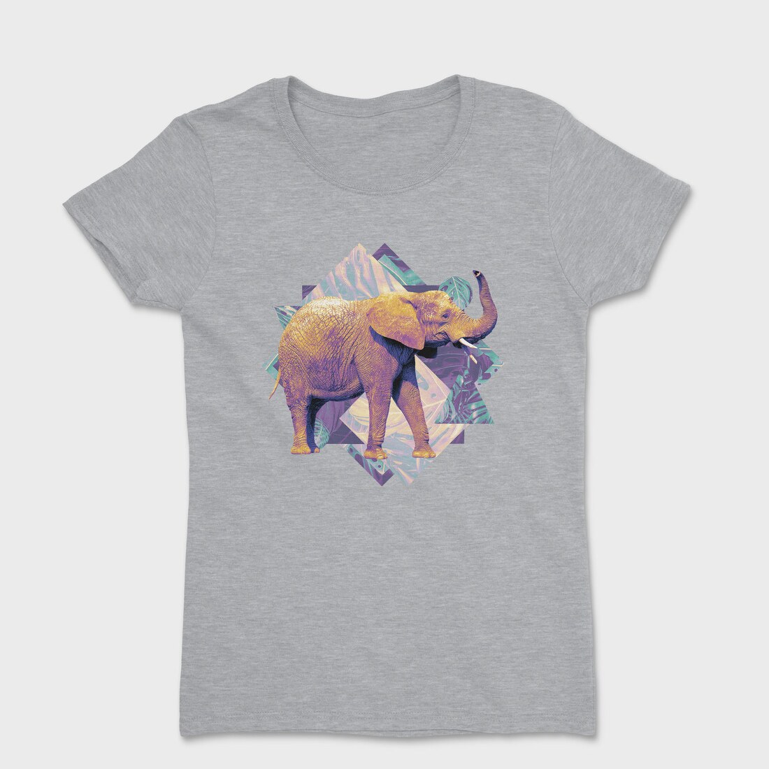 Elephant On Geometric Shapes Animals, Tricou Femei