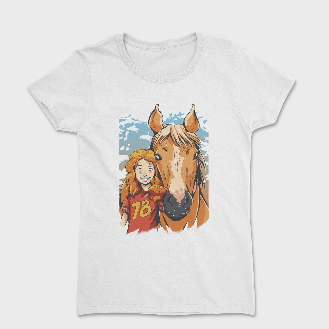 Girl And Horse Portrait Child Friend, Tricou Femei