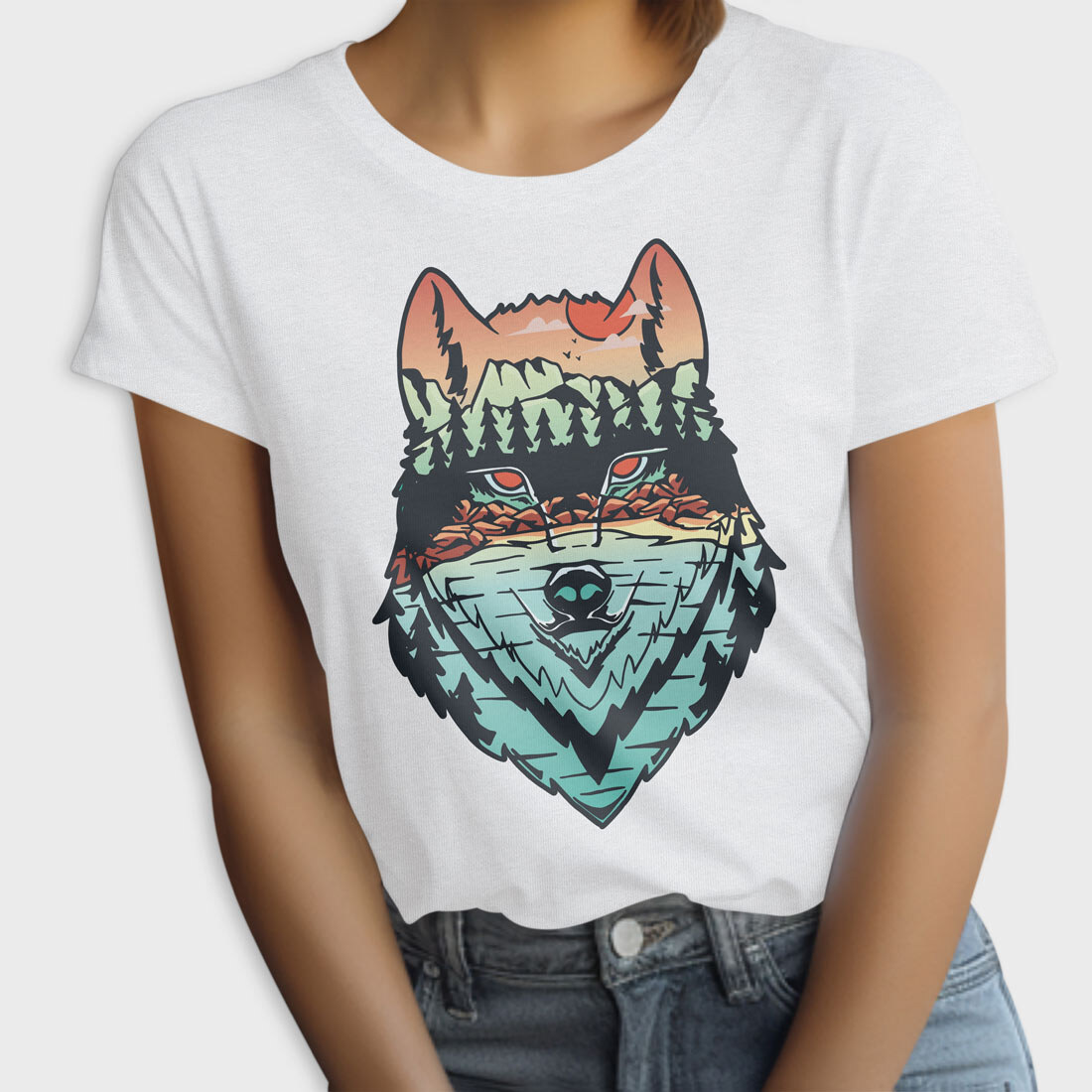 Hand Draw Landscape Wolf, Tricou Femei