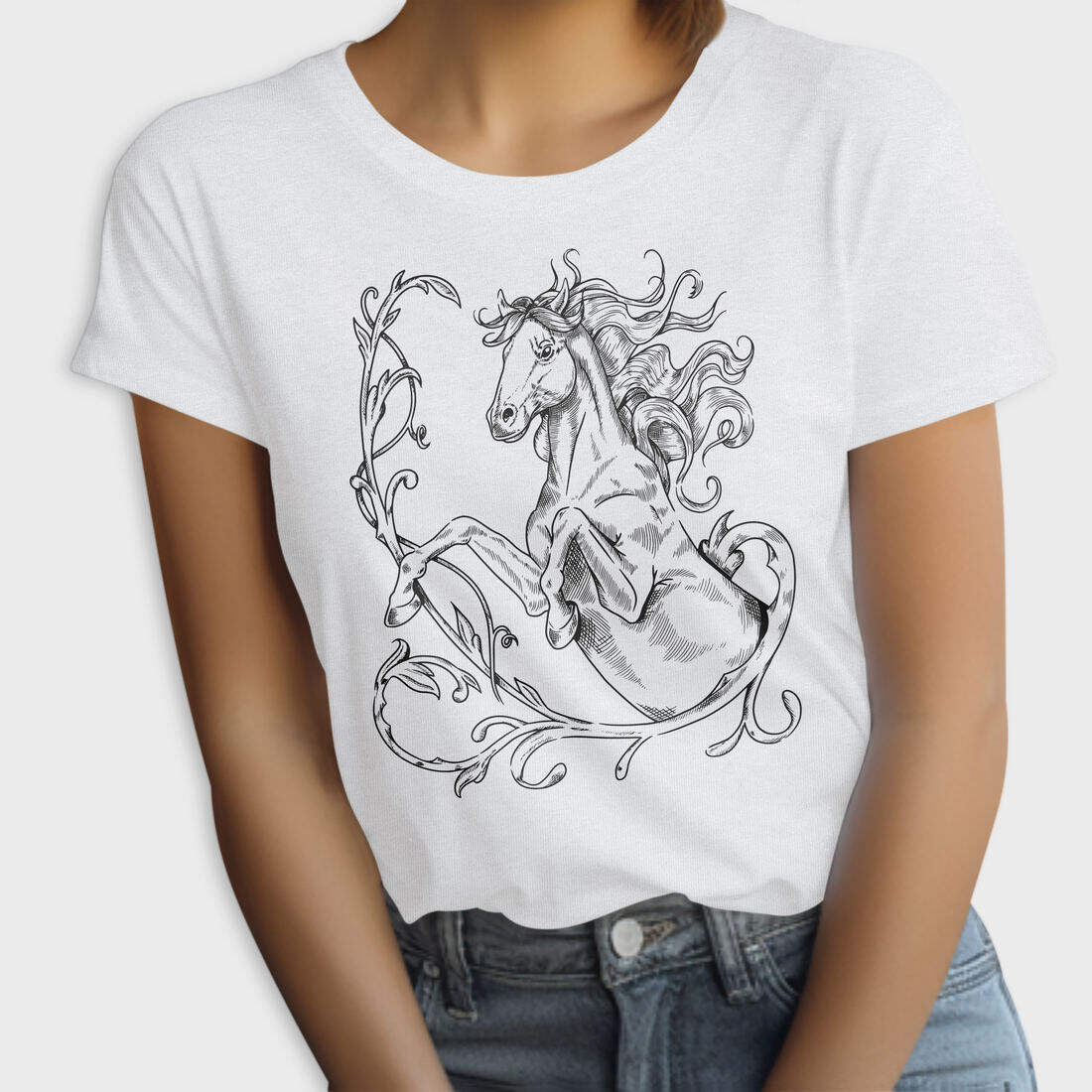 Hand Drawn Antique Horse Animal, Tricou Femei