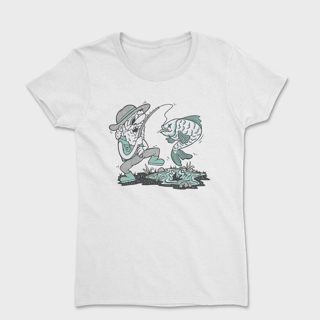 Happy Fisherman And Fish Cartoon, Tricou Femei