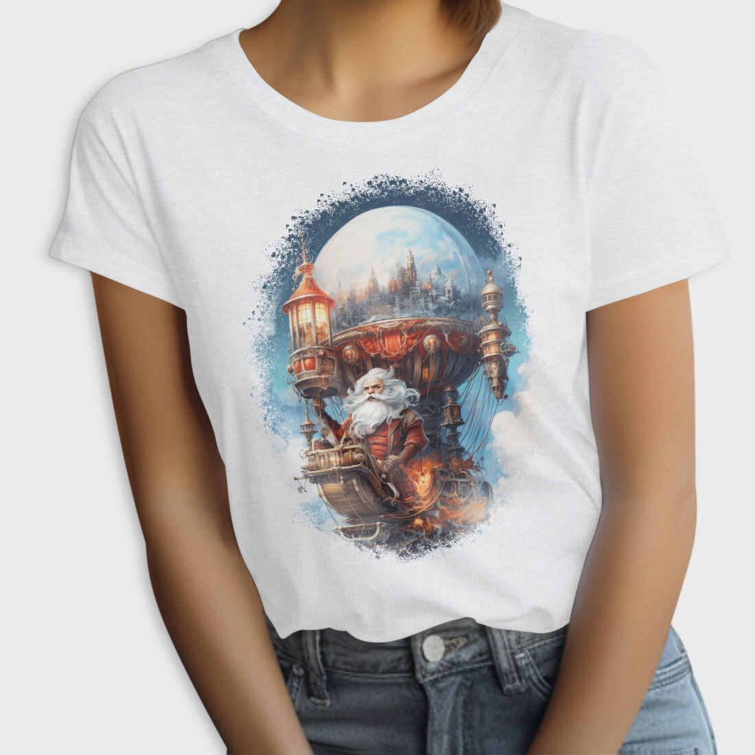 Santa Through The Sky Steampunk Globe, Tricou Femei