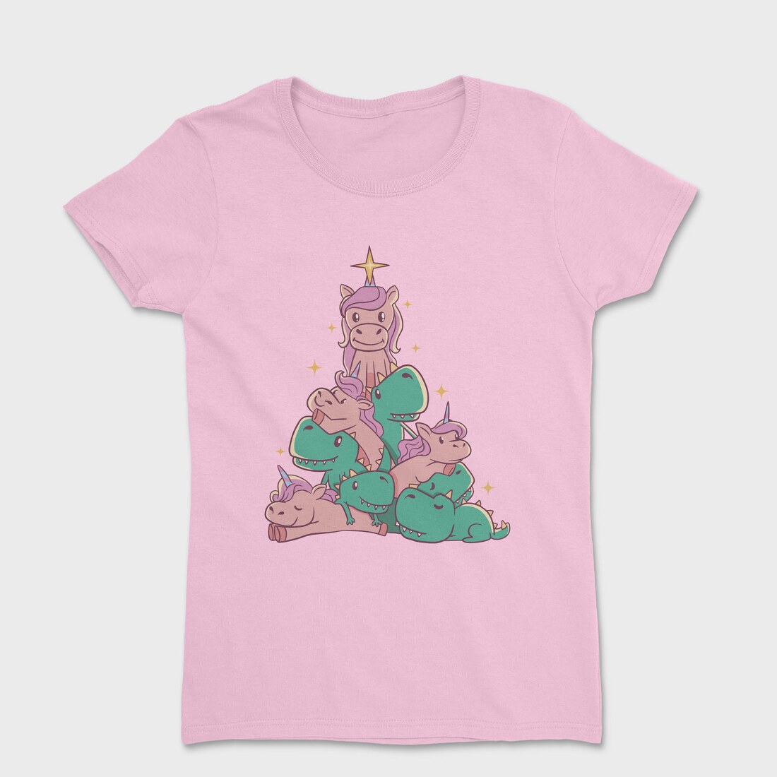 Unicorns And T Rex Christmas Tree, Tricou Femei