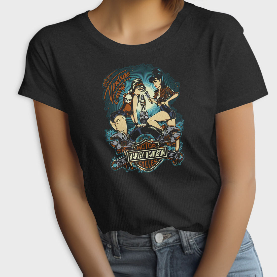 Vintage Garage Biker Girls Harley Davidson, Tricou Femei