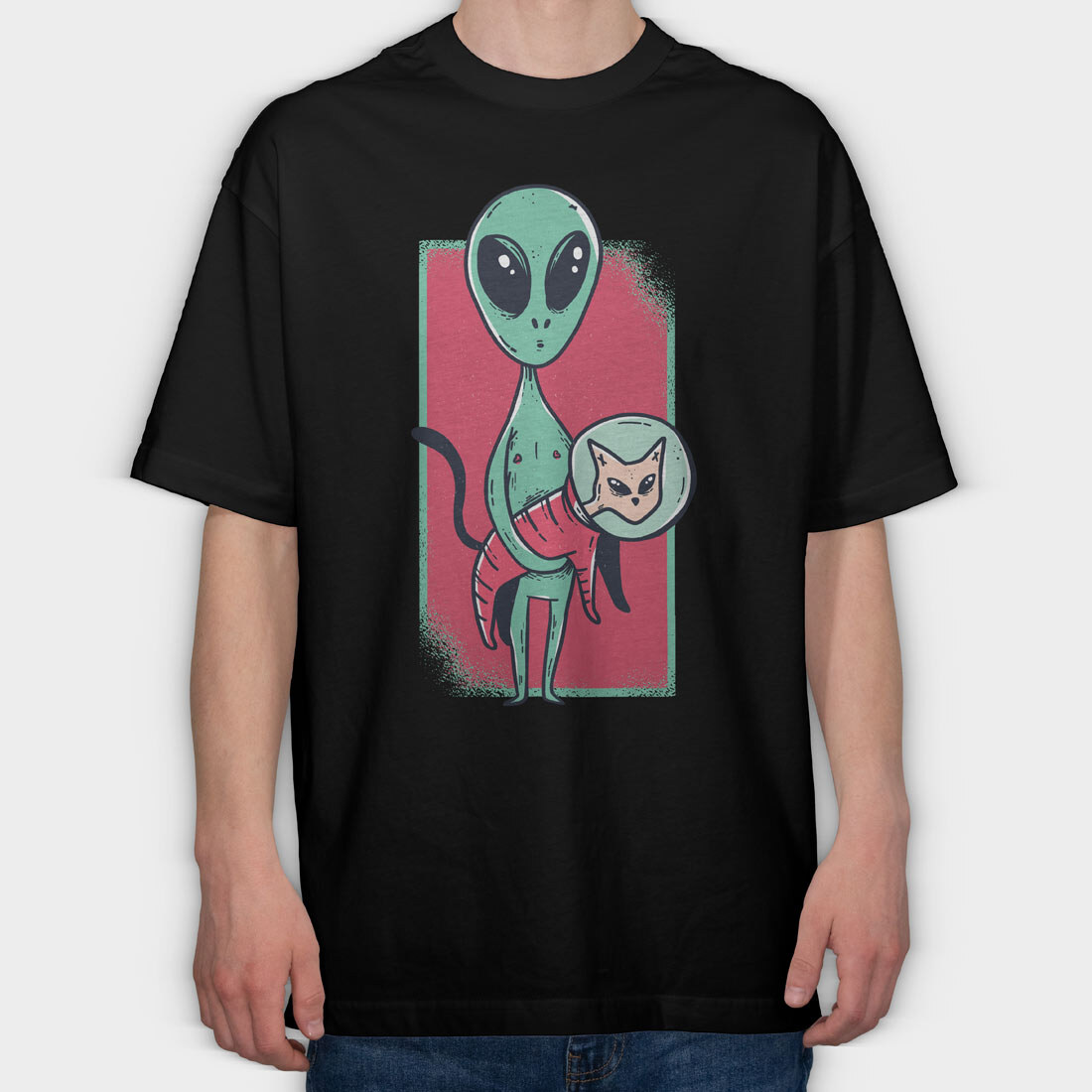 Alien Cat, Tricou Oversize Barbati (Unisex)