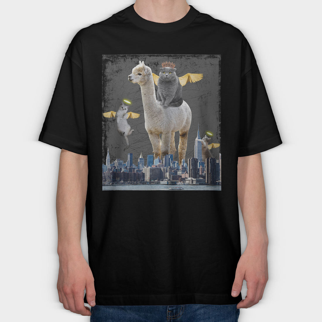 Angel Cats Surreal Collage, Tricou Oversize Barbati (Unisex)