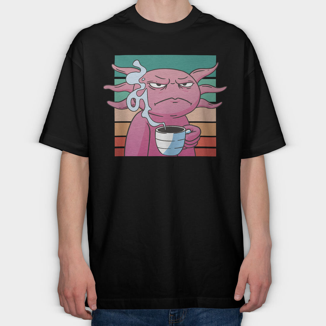 Angry Axolotl With Coffee, Tricou Oversize Barbati (Unisex)