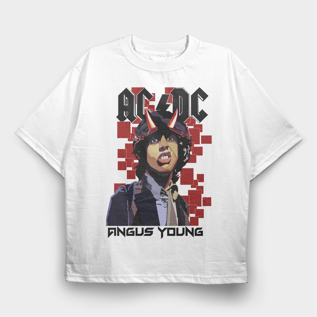 ANGUS YOUNG ACDC, Tricou Oversize Barbati (Unisex)