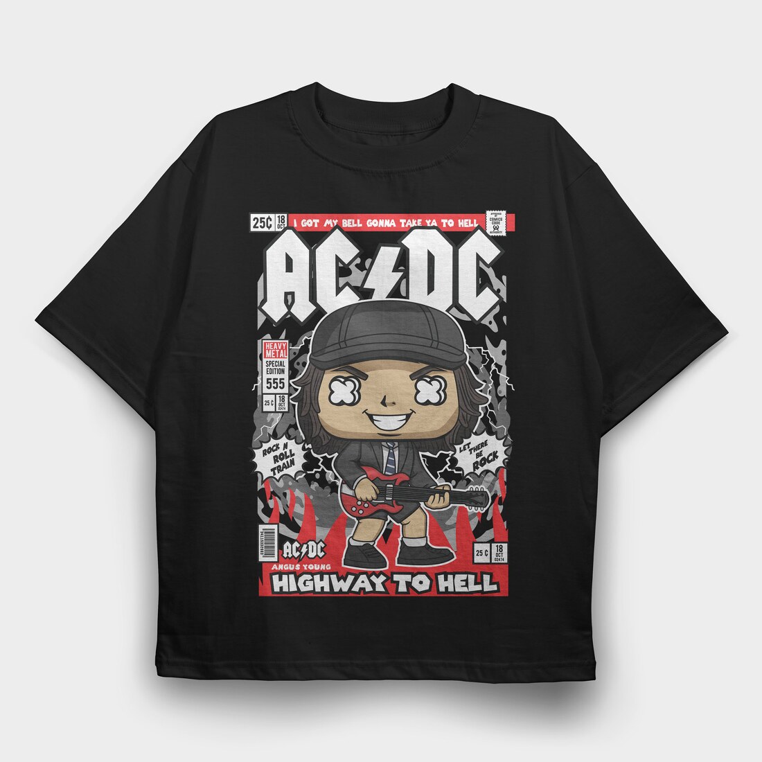 Angus Young ACDC, Tricou Oversize Barbati (Unisex)