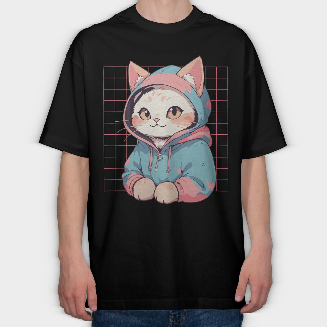 Anime Cat Cute, Tricou Oversize Barbati (Unisex)