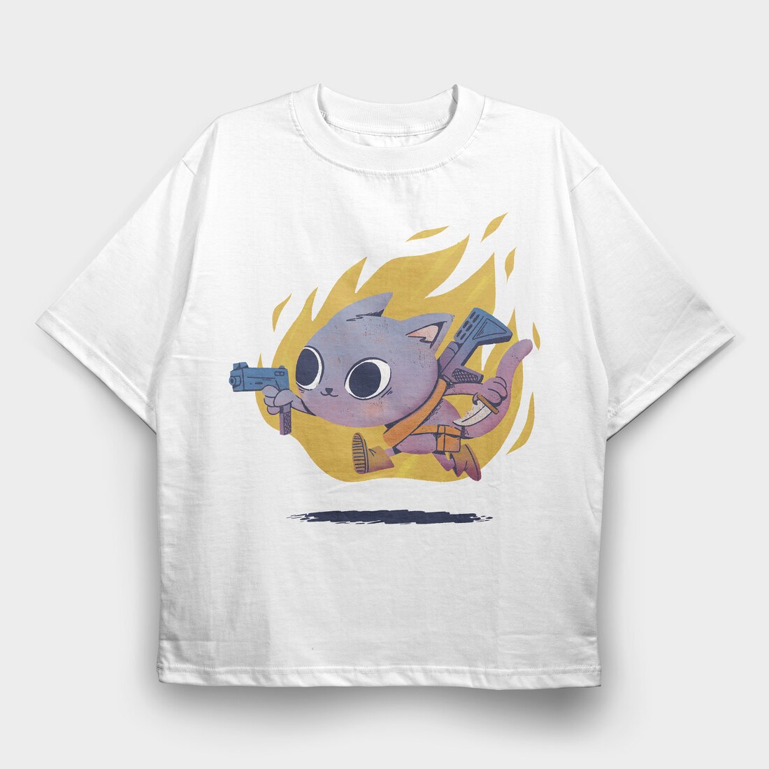 Armed Cute Cat, Tricou Oversize Barbati (Unisex)