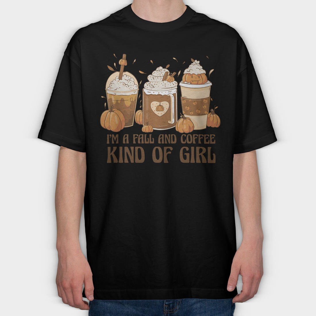 Autumn Coffee Drinks Fall And Girl, Tricou Oversize Barbati (Unisex)