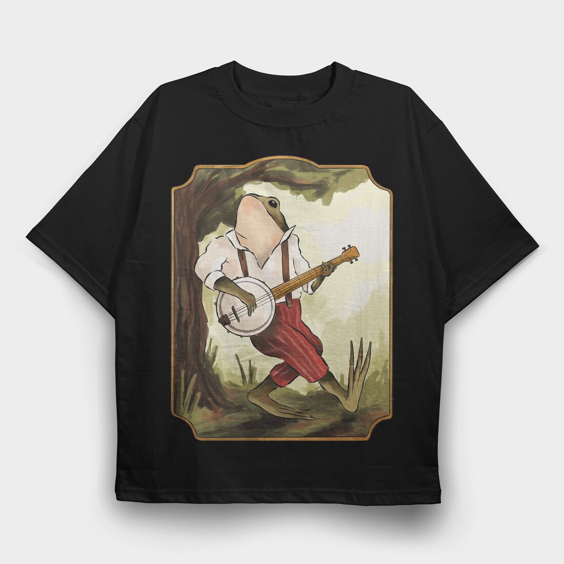 Banjo Frog Vintage Illustrations, Tricou Oversize Barbati (Unisex)