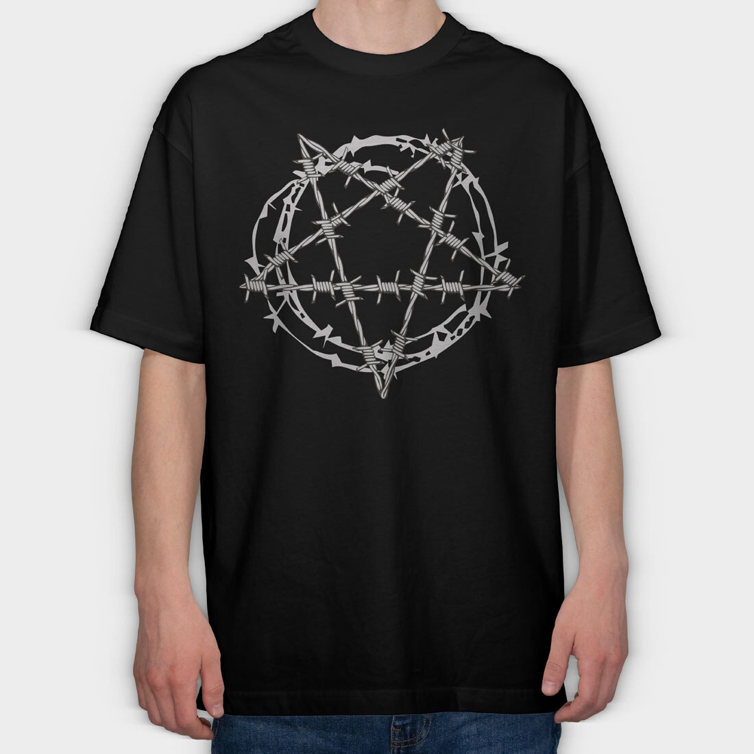 Barbed Wire Pentagram, Tricou Oversize Barbati (Unisex)