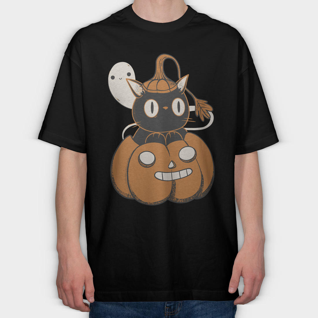 Black Cat Inside Pumpkin, Tricou Oversize Barbati (Unisex)