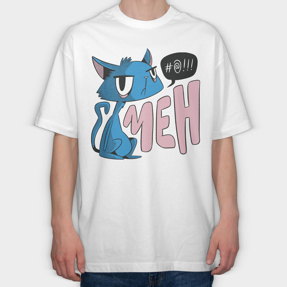Blue Cat Meh, Tricou Oversize Barbati (Unisex)