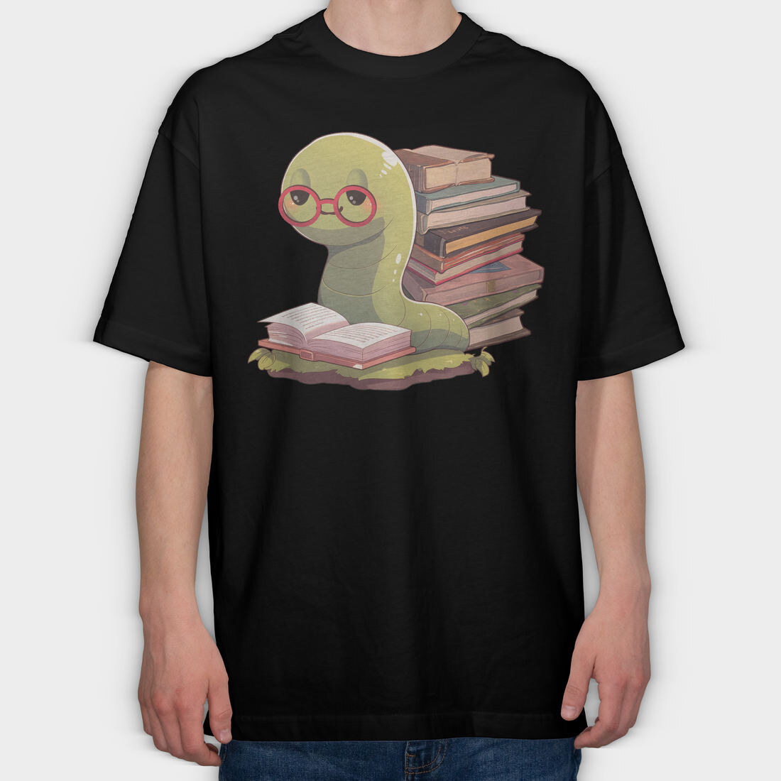 Bookworm With Glasses Worm Reading, Tricou Oversize Barbati (Unisex)