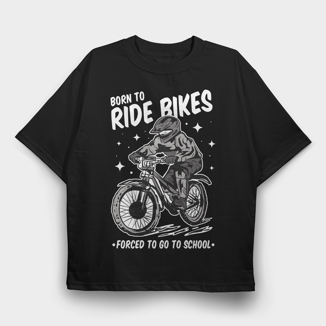 Born to Ride Bikes Forced to Go to School, Tricou Oversize Barbati (Unisex)