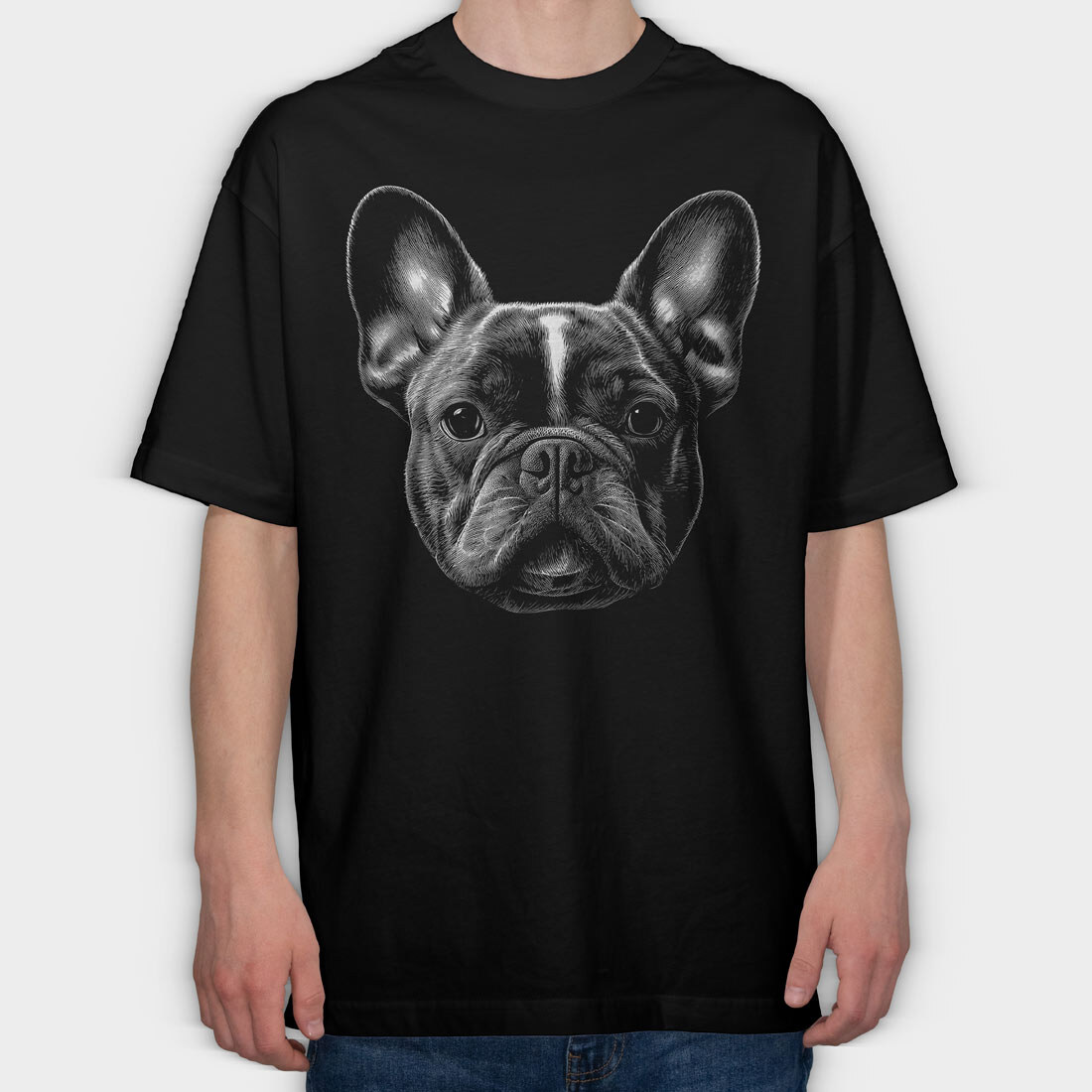 Bulldog Portrait Monochrome, Tricou Oversize Barbati (Unisex)