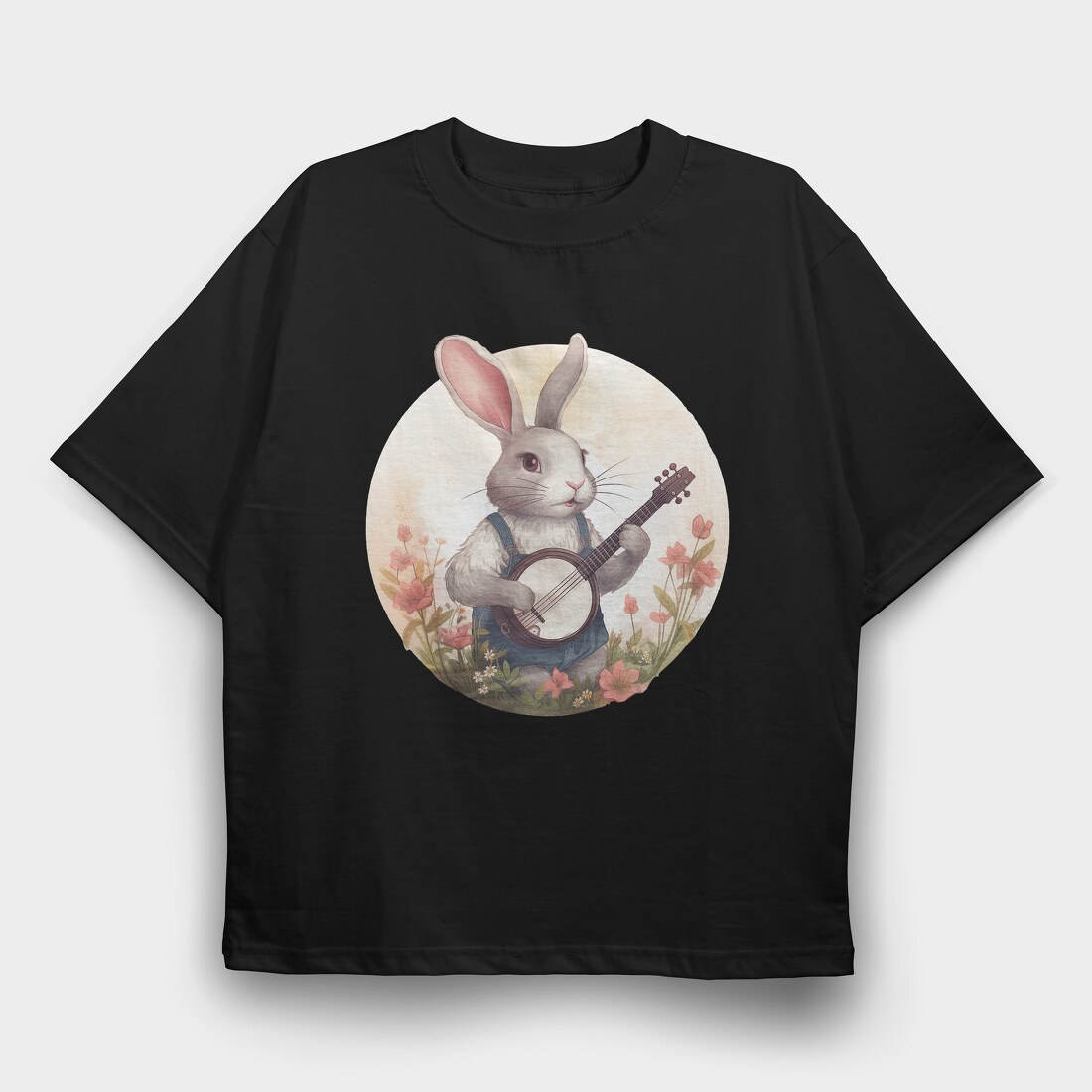 Bunny Playing Banjo Cottagecore, Tricou Oversize Barbati (Unisex)