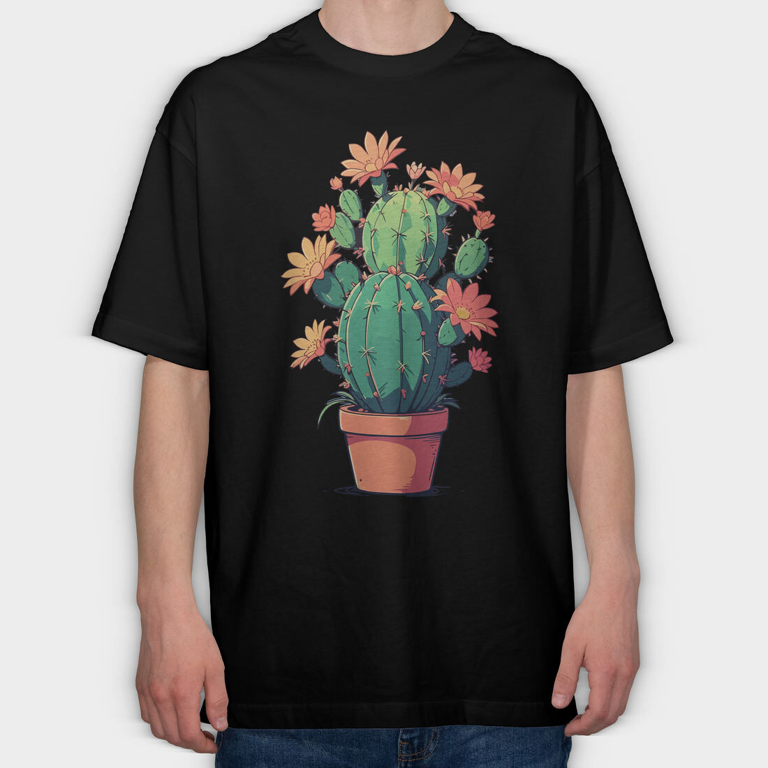 Cactus With Yellow Flowers, Tricou Oversize Barbati (Unisex)
