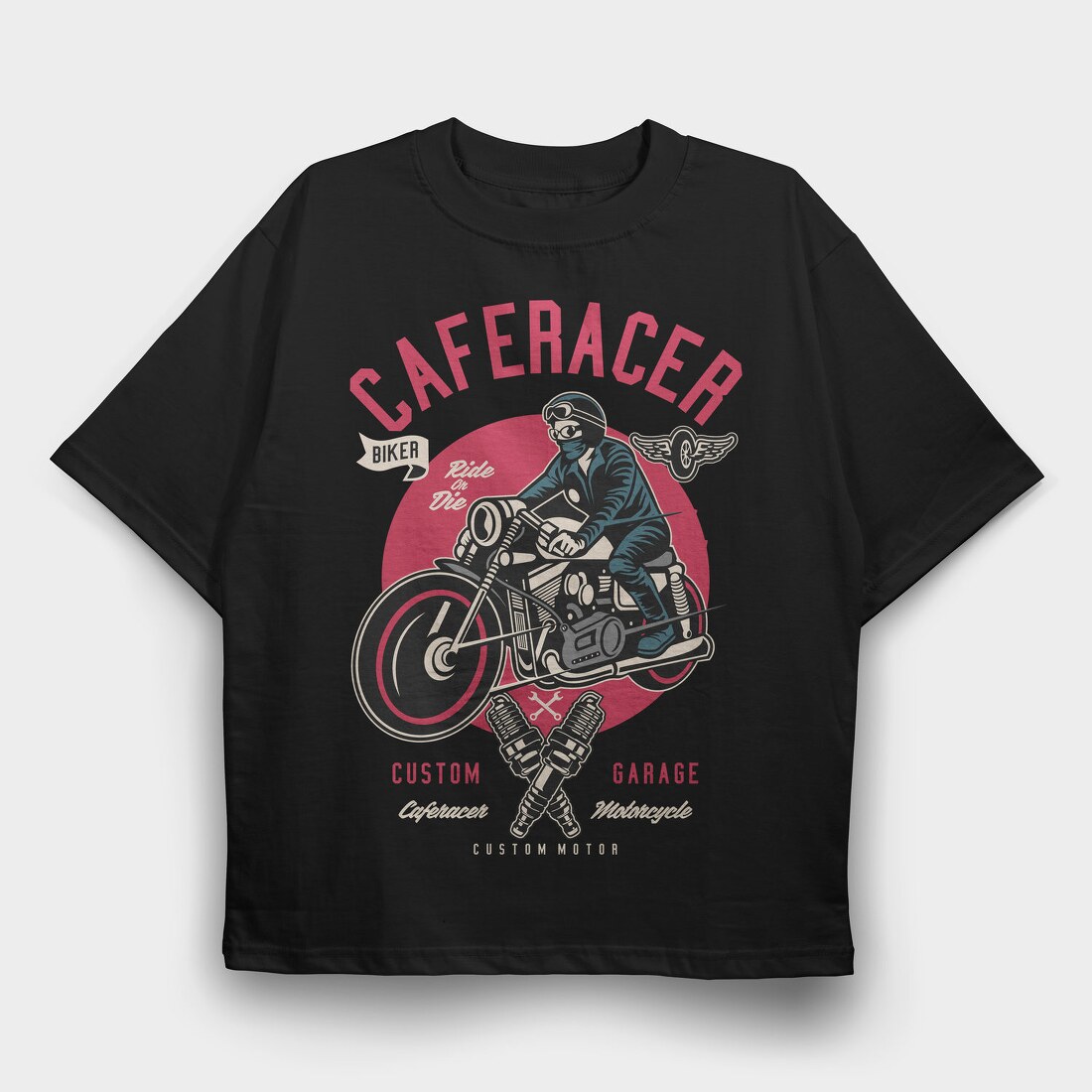 Caferacer Garage, Tricou Oversize Barbati (Unisex)