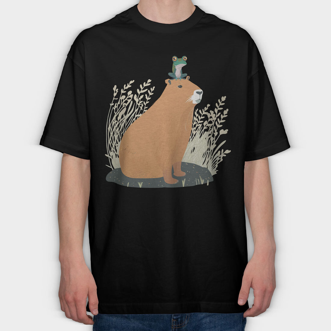 Capybara and Frog, Tricou Oversize Barbati (Unisex)