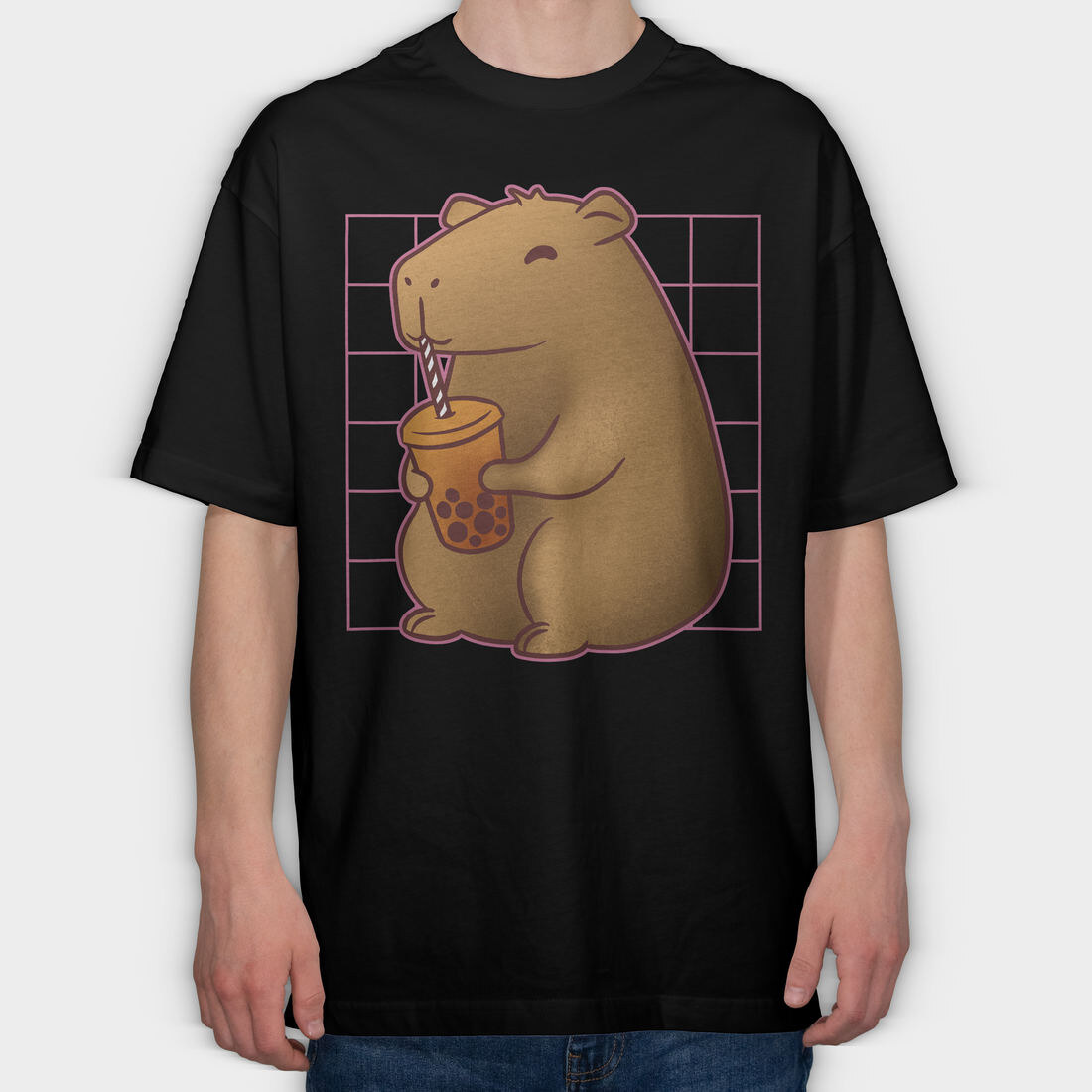 Capybara Drinking A Cup Of Tea Boba Tote, Tricou Oversize Barbati (Unisex)