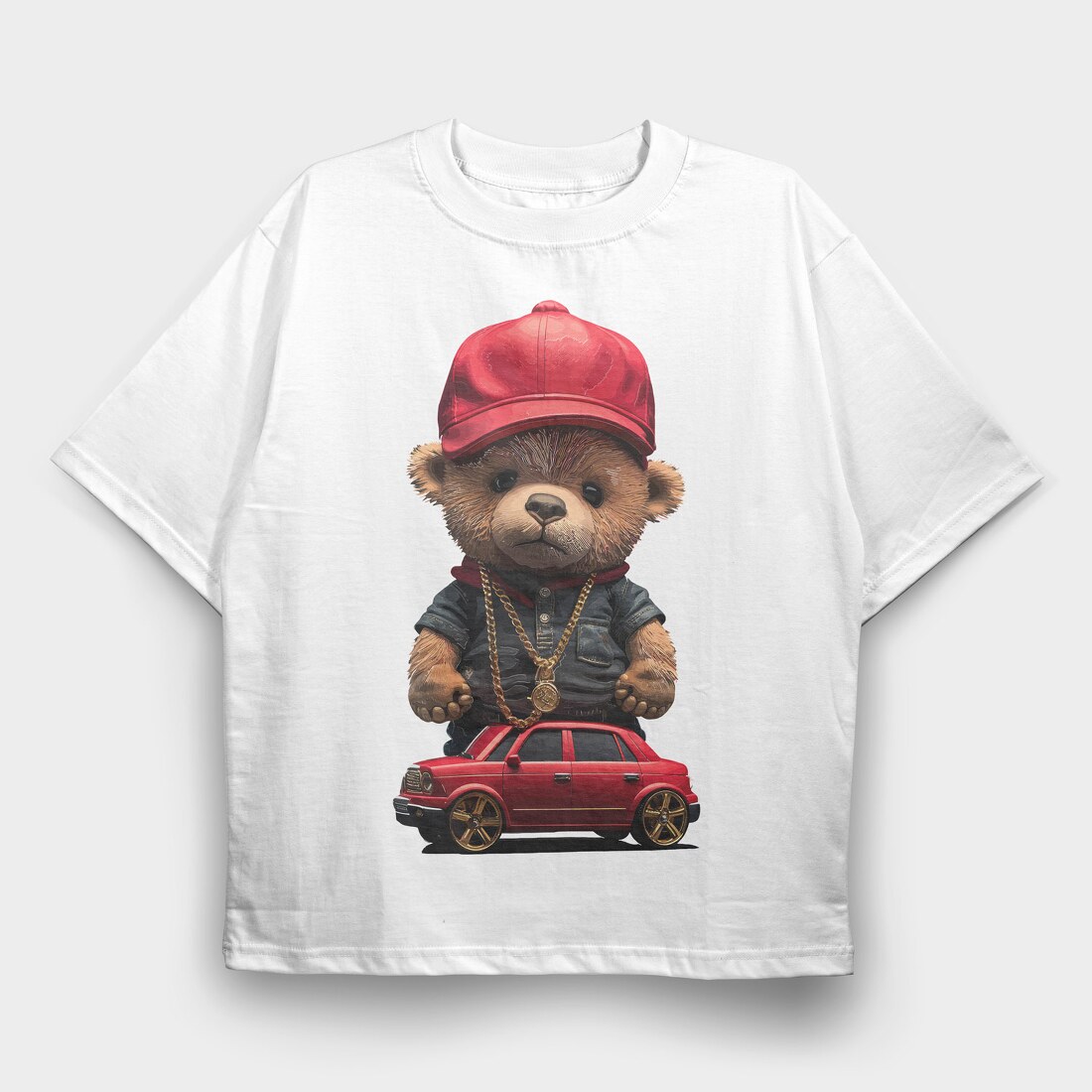 Car Teddy Bear, Tricou Oversize Barbati (Unisex)
