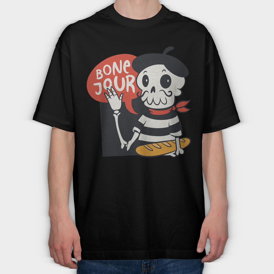 Cartoon French Skull Bone Jour, Tricou Oversize Barbati (Unisex)