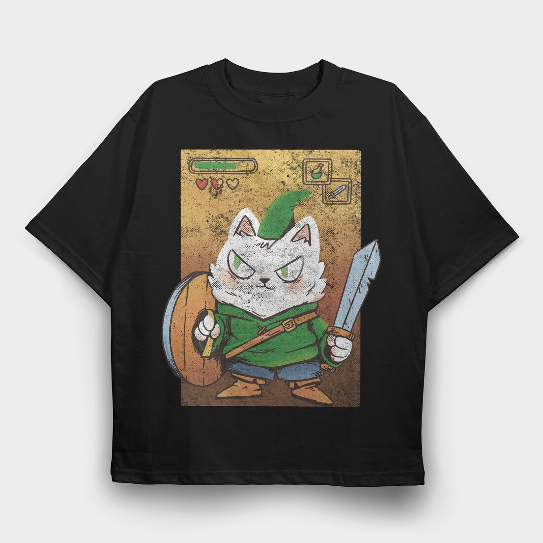 Cartoon Medieval Knight Warrior Cat, Tricou Oversize Barbati (Unisex)