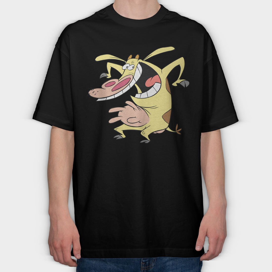 Cartoon Retro Cow and Chicken 3, Tricou Oversize Barbati (Unisex)