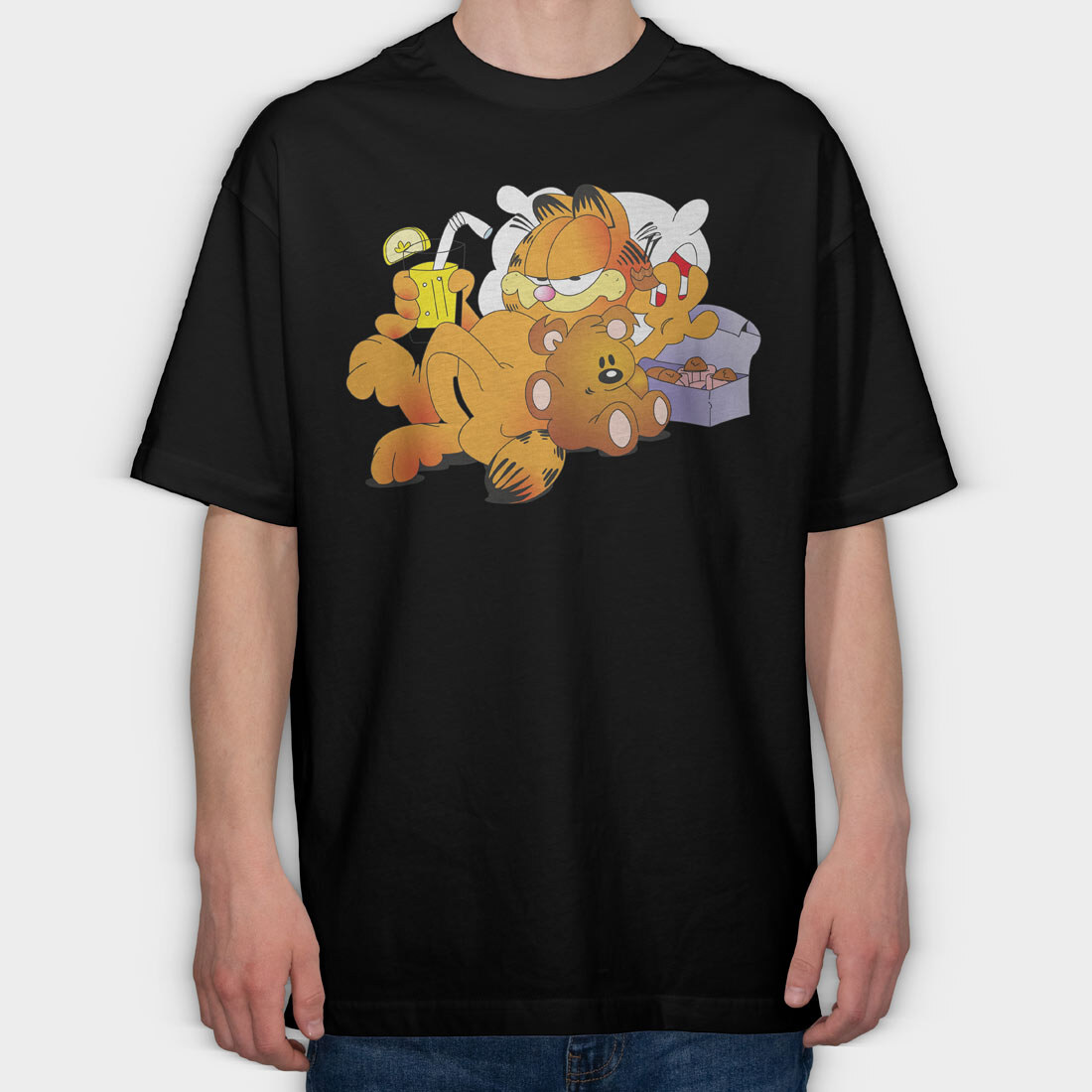 Cartoon Retro Garfield 4, Tricou Oversize Barbati (Unisex)