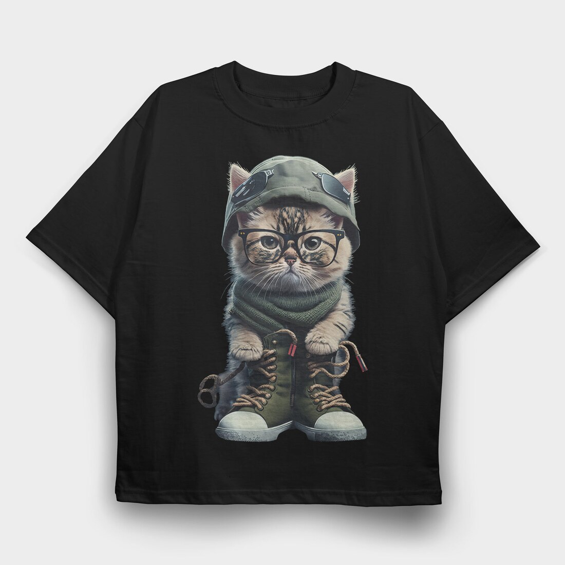 Cat Aviator Chic, Tricou Oversize Barbati (Unisex)