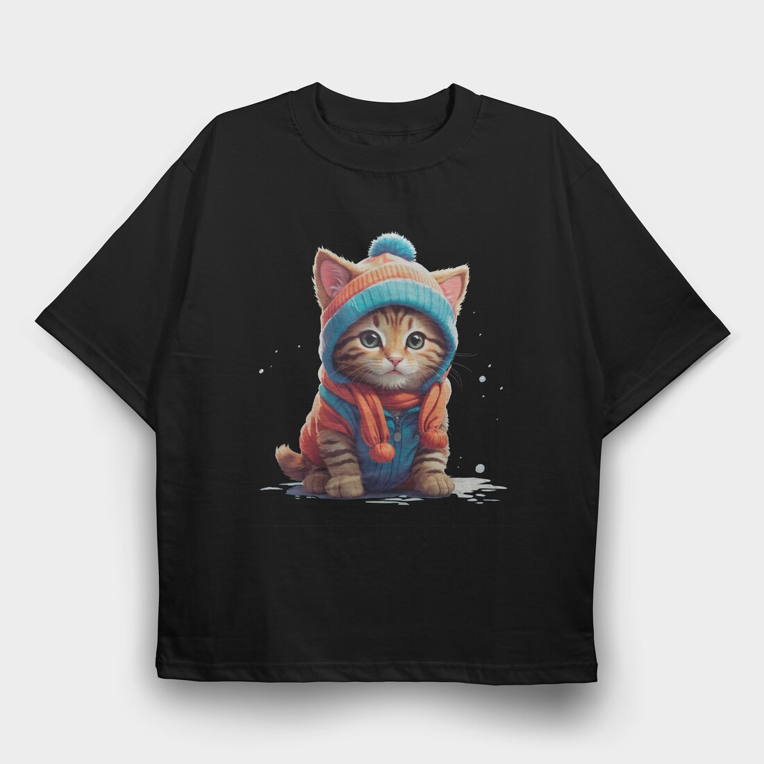 Cat Beanie Cap, Tricou Oversize Barbati (Unisex)