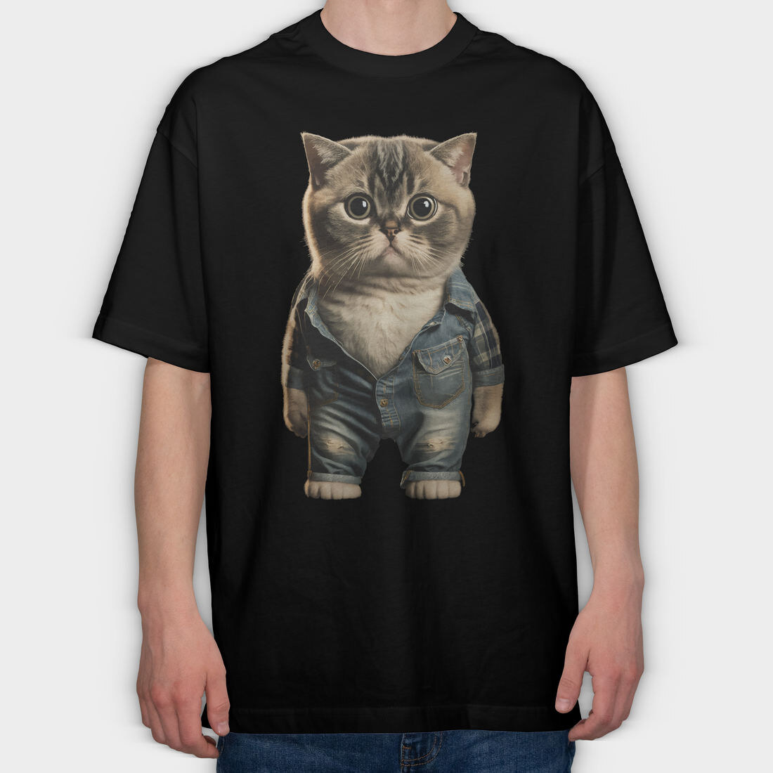 Cat Denim Outfit, Tricou Oversize Barbati (Unisex)