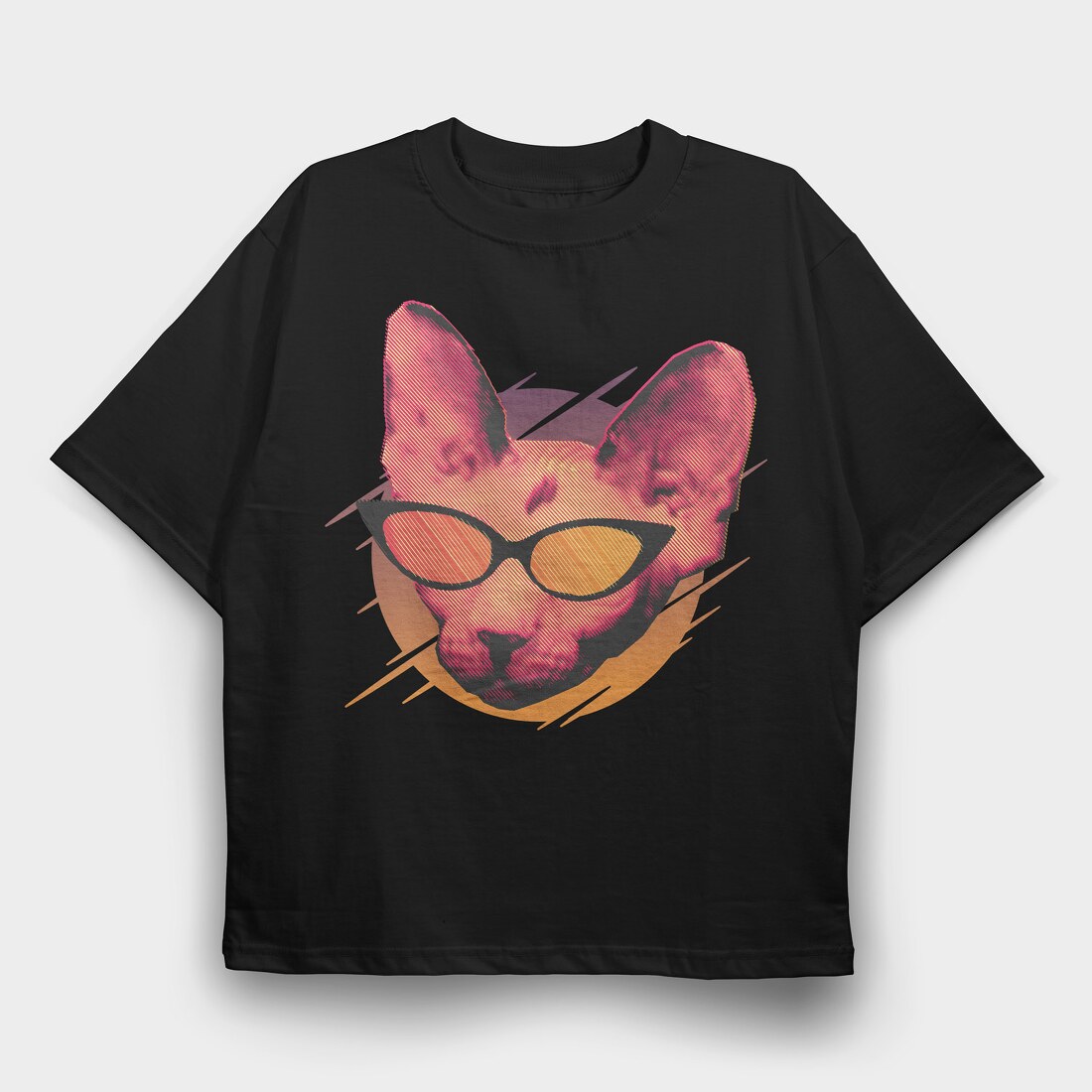 Cat Glasses, Tricou Oversize Barbati (Unisex)