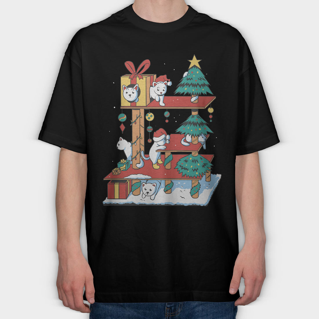 Cat House Christmas, Tricou Oversize Barbati (Unisex)