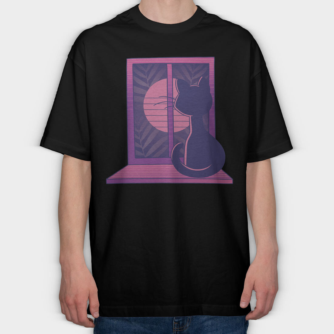 Cat In Window, Tricou Oversize Barbati (Unisex)