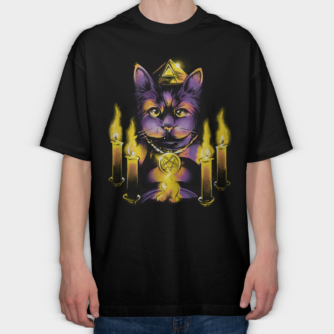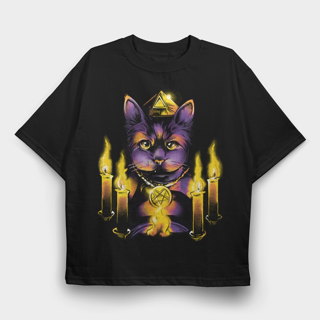 Cat Magic Candle Ritual, Tricou Oversize Barbati (Unisex)