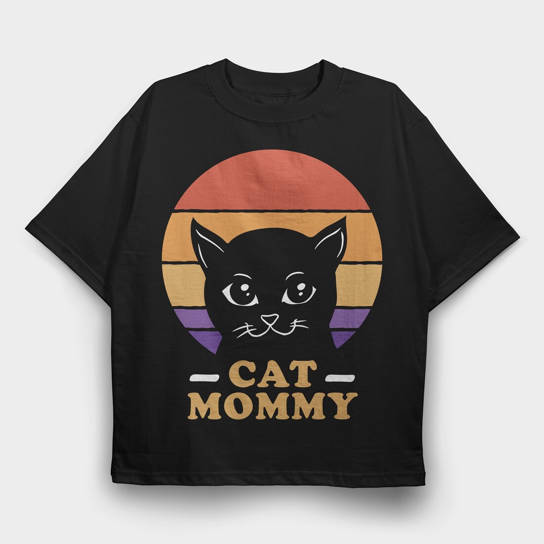 Cat Mommy Retro Sunset, Tricou Oversize Barbati (Unisex)
