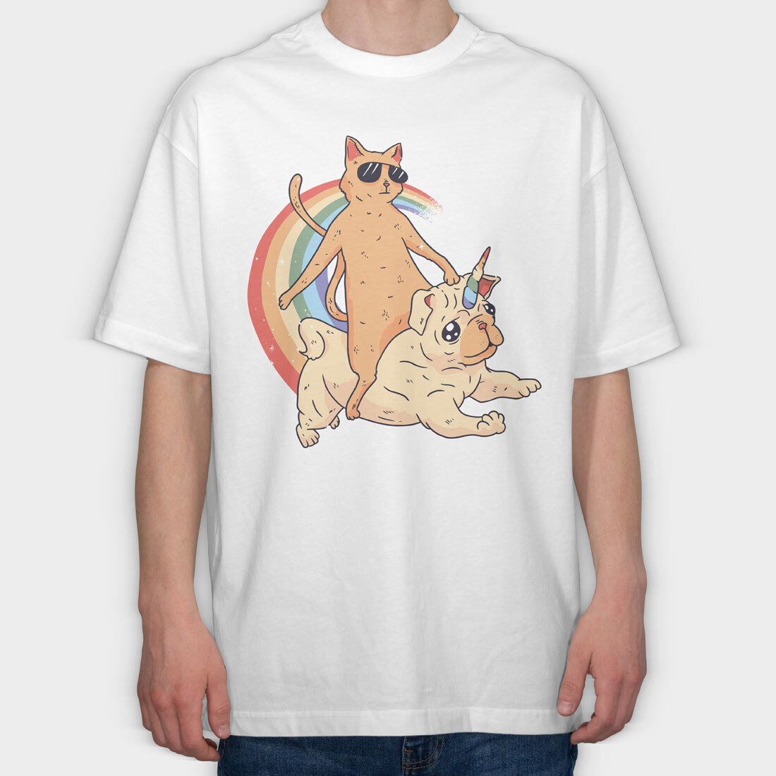 Cat Riding Dog Unicorn, Tricou Oversize Barbati (Unisex)