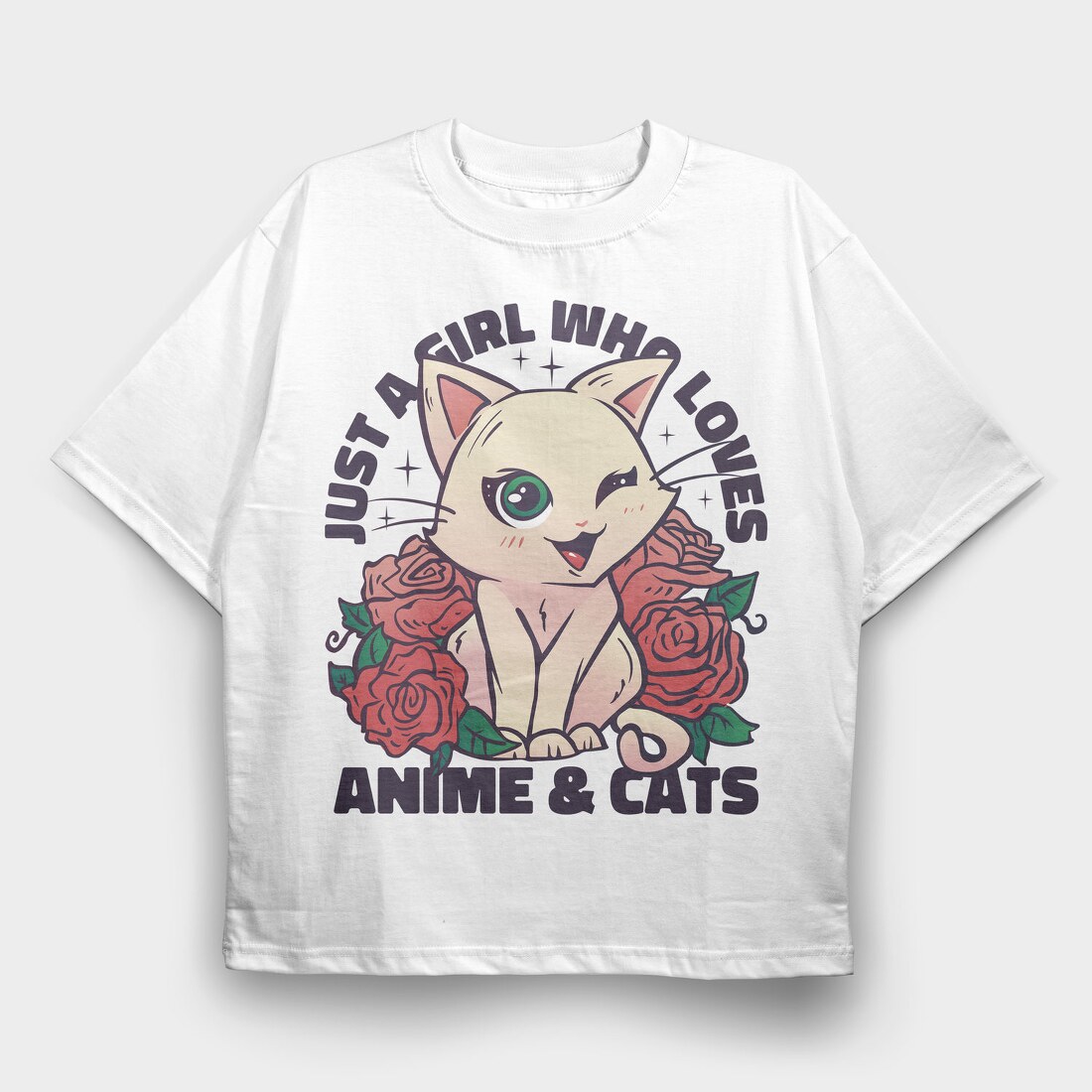 Cat Rose Anime, Tricou Oversize Barbati (Unisex)