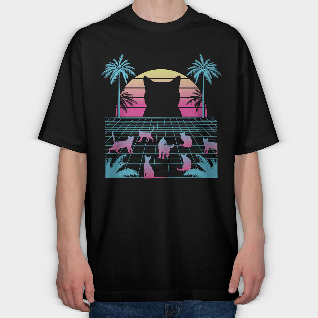 Cat Vaporwave, Tricou Oversize Barbati (Unisex)
