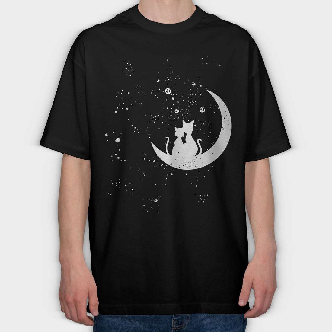 Cats Love Moon, Tricou Oversize Barbati (Unisex)