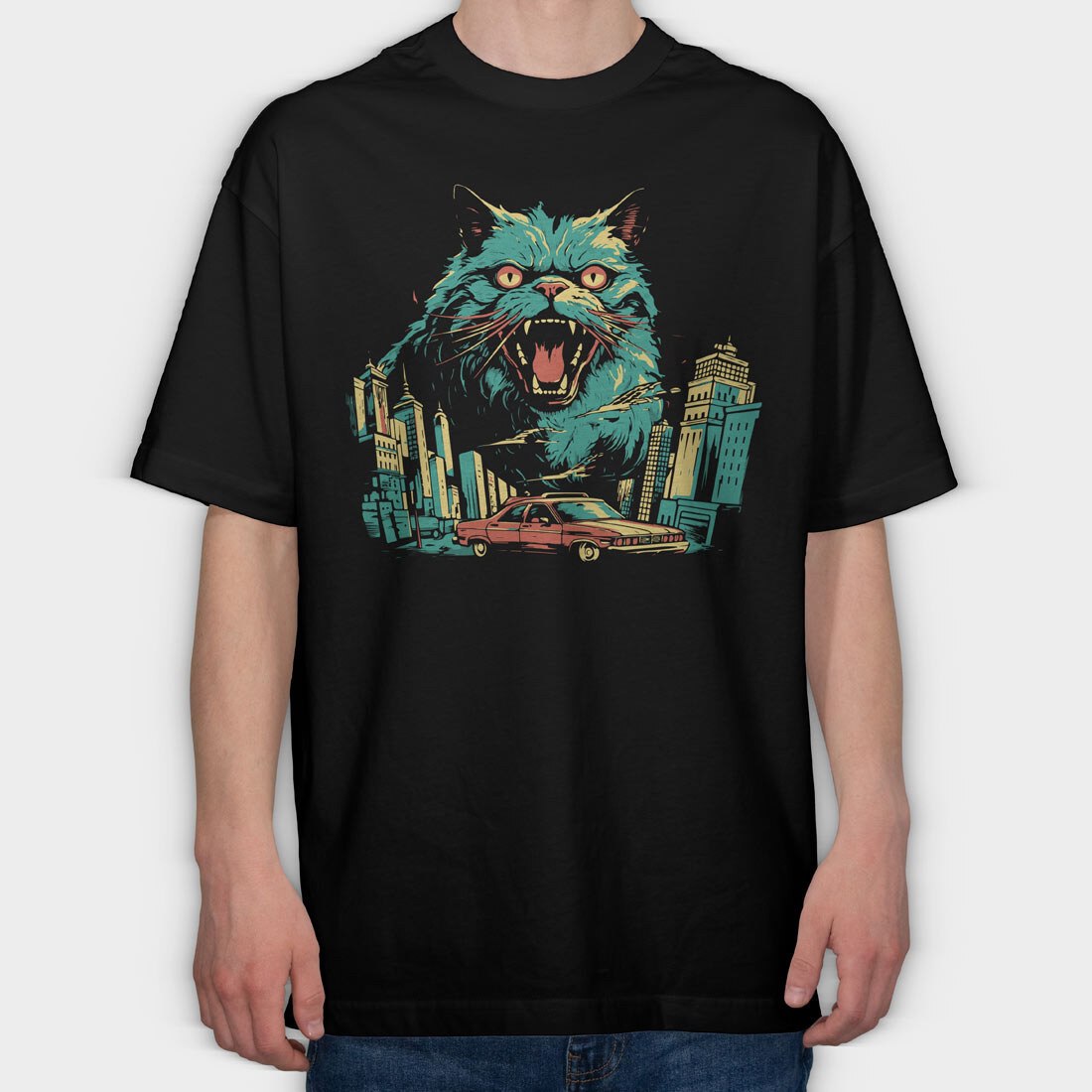 Catzilla 2, Tricou Oversize Barbati (Unisex)