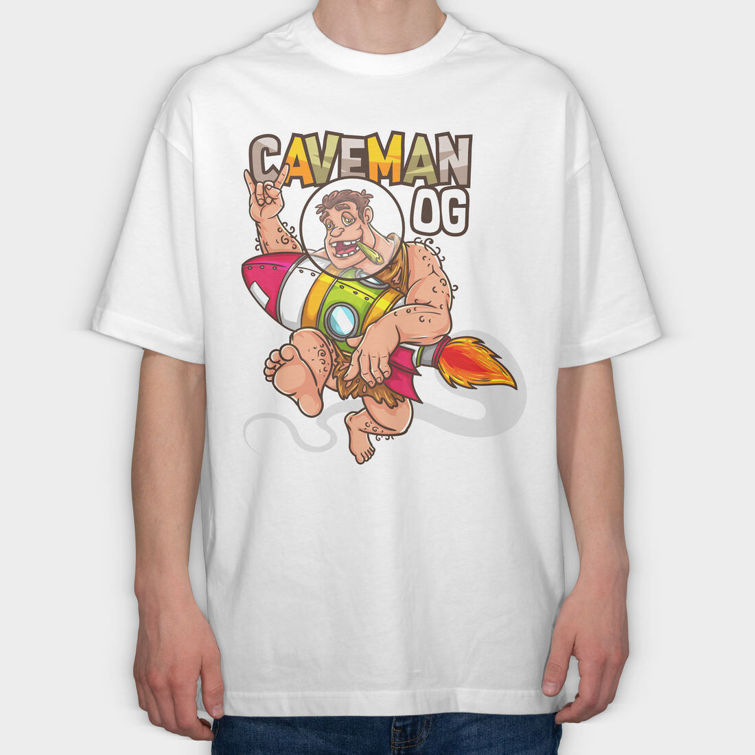 Caveman Rocket Ship, Tricou Oversize Barbati (Unisex)